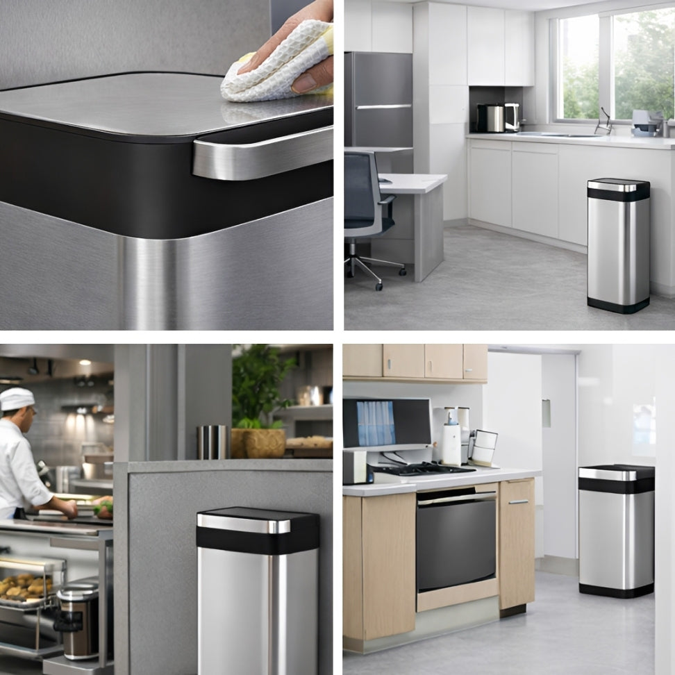 Keep your space spotless with our 60L Trash Container with automatic smasher, designed for homes, offices, and commercial areas. Its generous capacity lets you store more waste, reducing the need for constant emptying. The practical rectangular shape of this trash container slides neatly against walls or under counters, helping you maintain a tidy environment every day.